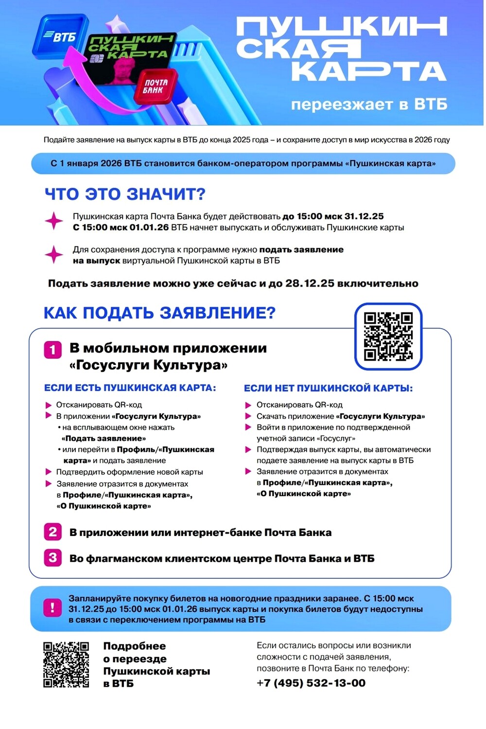 3. С 15:00 1 января 2026 года ВТБ начнет выпускать и обслуживать Пушкинские карты.